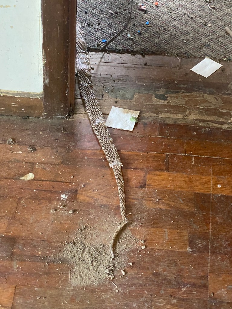 We did talk to the builder to see if any part was salvageable, but it was too far gone. *warning last pic is the “owner” of the snake skin…. Gives me the Heebie-jeebies!