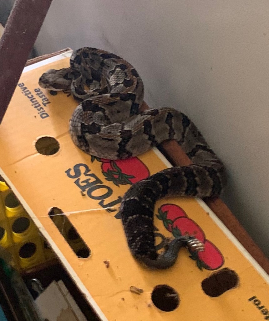 OMG!!! Yep found IN the house -Timber rattler must have enjoyed a rat buffet each day. That sucker is big!