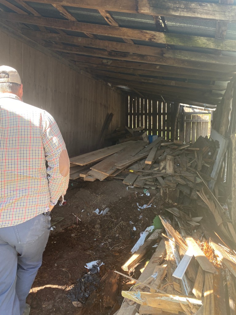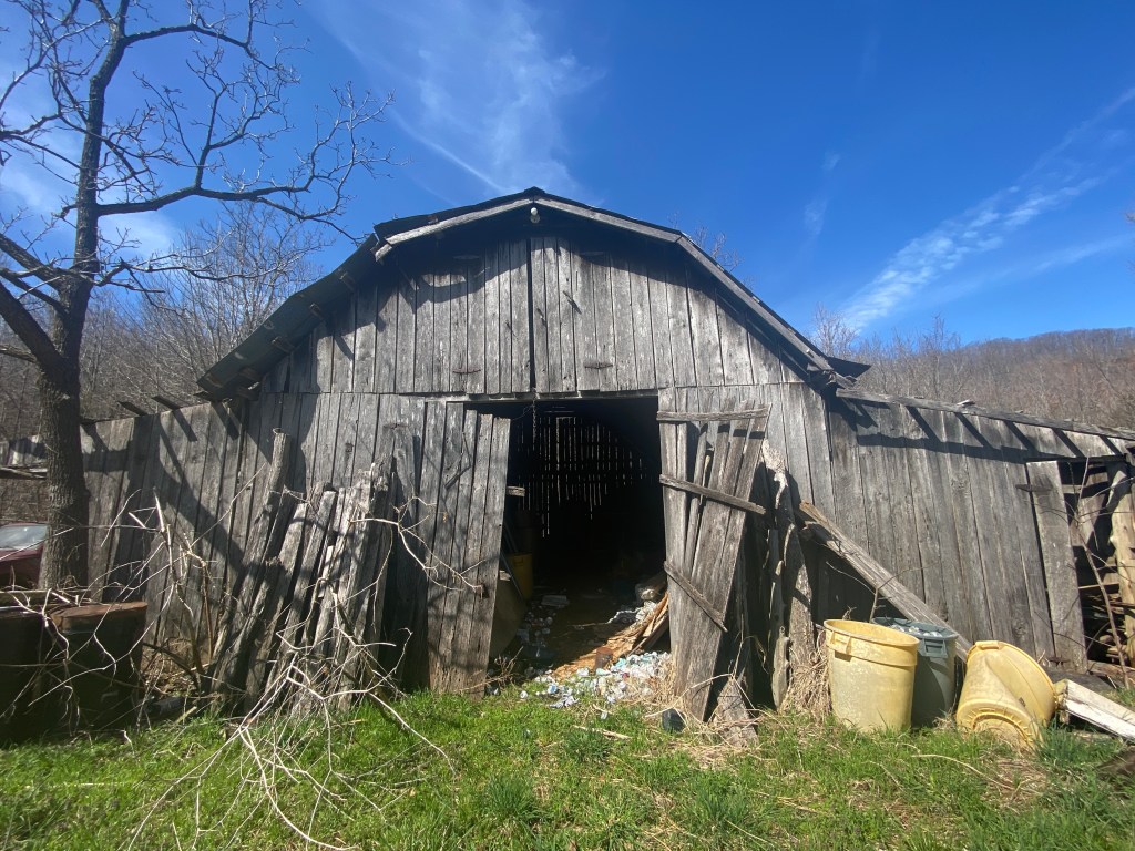 I just love this old barn. It could use a little TLC and roof patches, but I plan to keep it mostly as it is. The inside is in good condition and is full of old barn boards. The support pillars are made from old tree trunks. It had a huge barrel of hay and hundreds of soda cans, windows and doors that we have had to clean out. We surprised a little mouse in one of the dumps. * Note to all rodents — you must all vacate the premise now! We’ve got the barn all cleaned out now and it’s the perfect place to keep our spiffy new John Deere tractor.