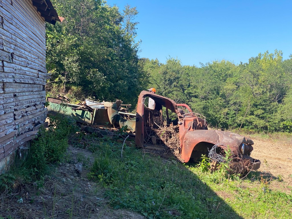 Remember the movie “Cars?” This cute old pickup was one of the many treasures we have found on Needle Eye Mountain. It’s kinda creepy and sad how much the headlights look like eyes.
