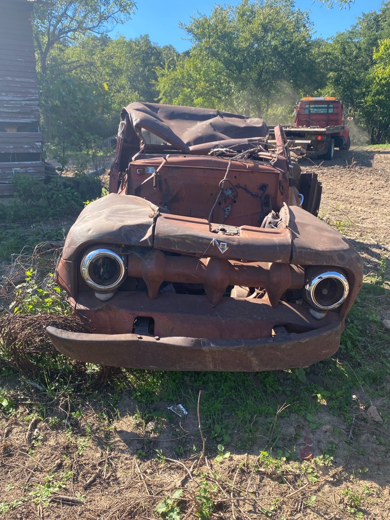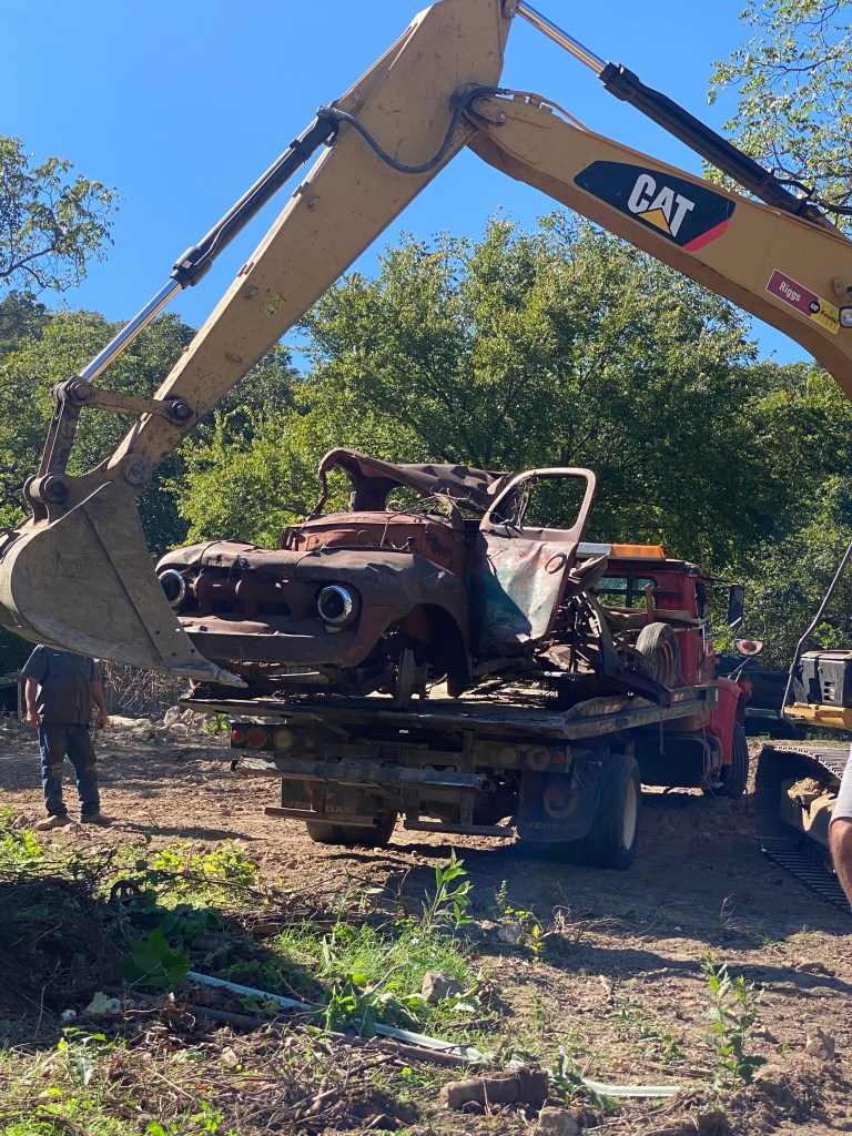 We thought about trying to salvage this old girl, but, alas she, went to the scrap yard instead. We did save a door for Scott’s future Man Cave.