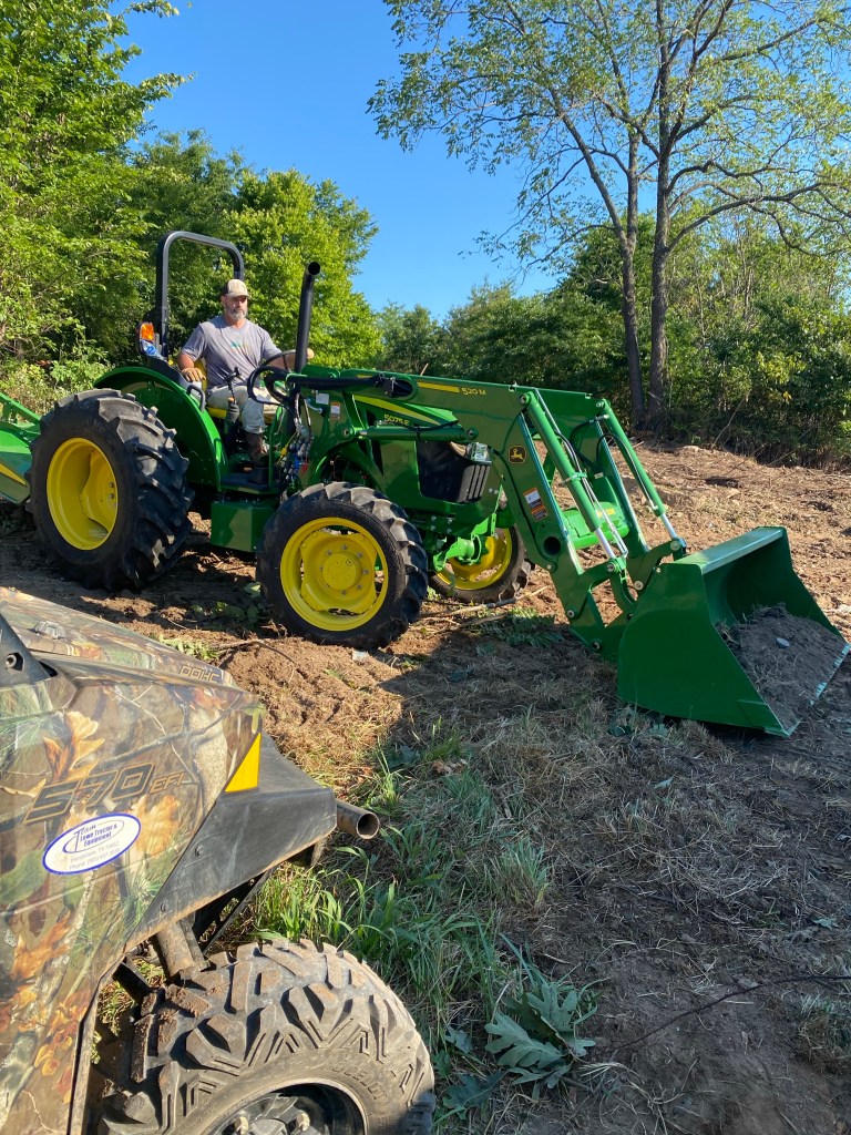So far, Scott has cut down about four acres of woods around the house and shed, and cleared a two-track (That what Scott calls it. It’s just country jargon for an unpaved, ungraded road) all around the mountain to make riding the side-by-side ATV a better experience. That farm boy can work!