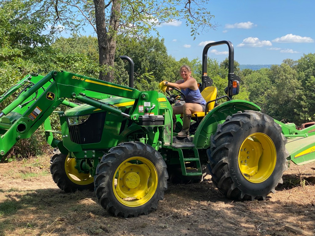 Scott is a natural. His farm-boy roots came right on out as soon as the thing was delivered. Me? Not so much. It has taken me forever to get the hang of it. I’m still driving in turtle speed, but I’m slowly getting speedier on it. The company slogan may be “Nothing Runs Like a Deere,” but perhaps it should be “Nothing Crawls Like Our Deere.”