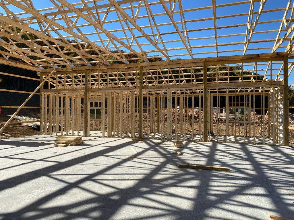 We finally got the lumber and it is amazing how fast framing goes! A week later we were getting doors, windows, and picking out the metal color — we went with black.
