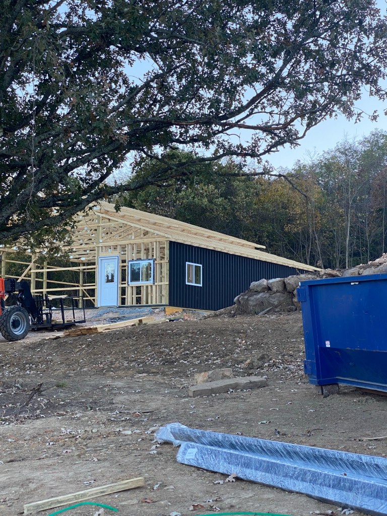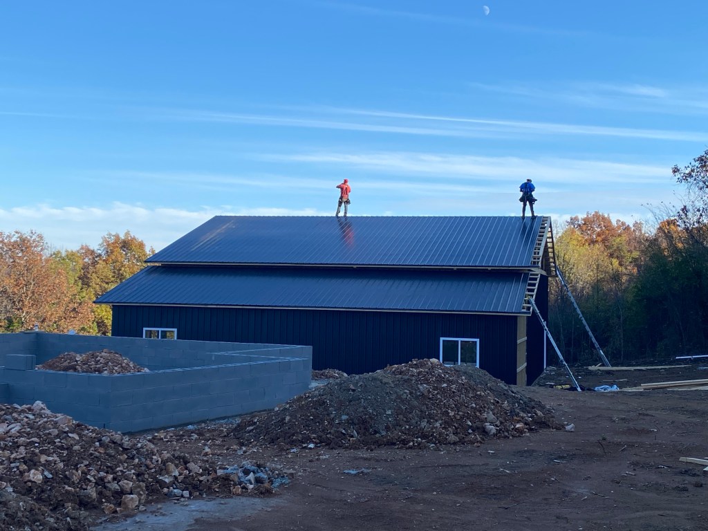 Our plan ever since we bought the property was to build a big metal building that ultimately will be Scott’s dream Man Cave. All his hunting trophies and taxidermy projects will be in there. But we’re also including a small apartment for us to live in while the main house is being built.