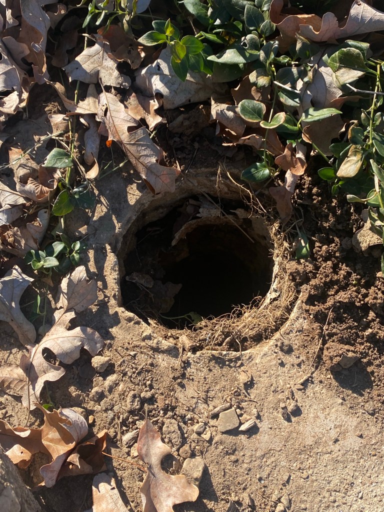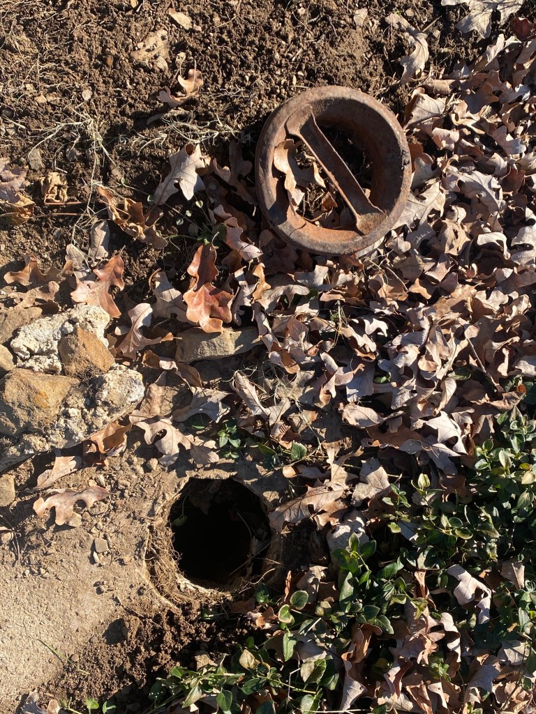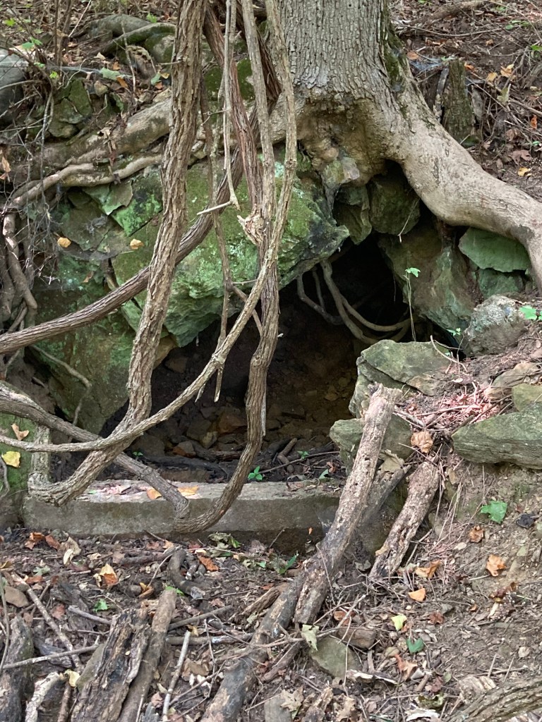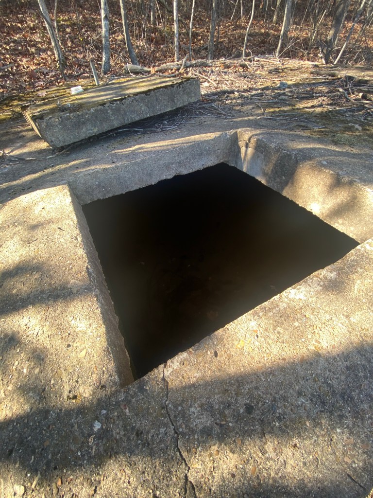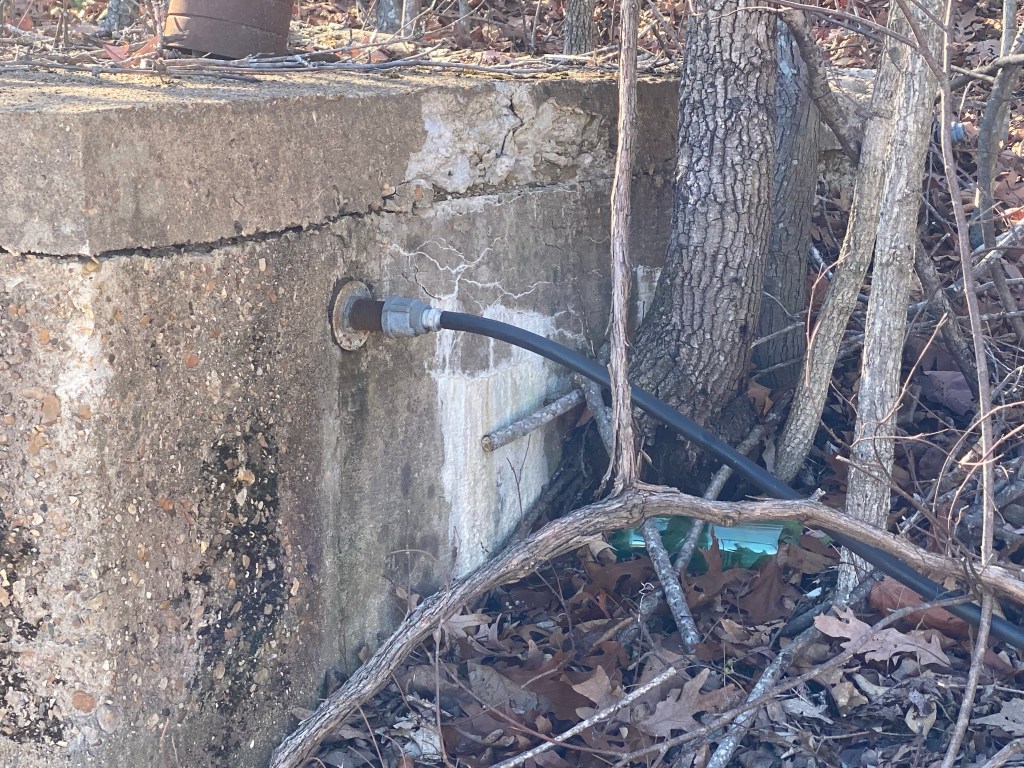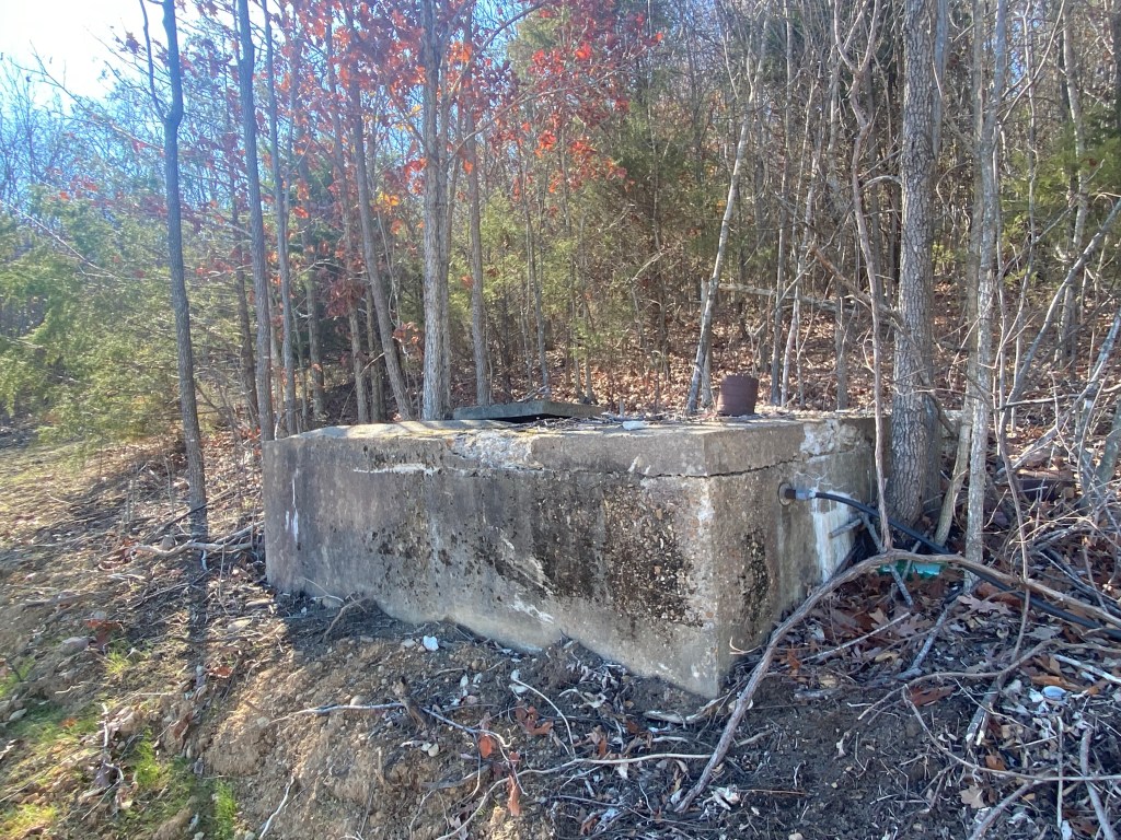 Option 1: The people who lived on the land before us used a spring on the land for their water source. The spring sits about 300 yards from the old house and has flexible tubing that runs from the spring to a cistern . The cistern sat above the old house which was gravity fed from the cistern. The spring appears to be now dry. We’ve been told the old owners relied on the spring but also hauled water when it didn’t produce.