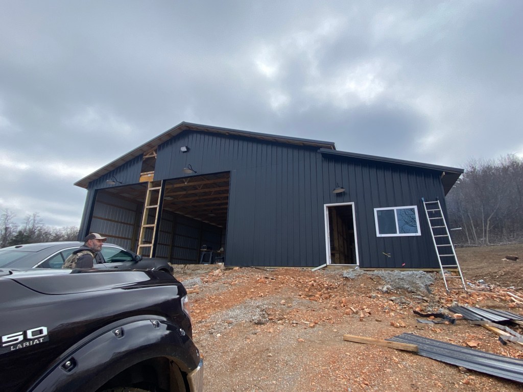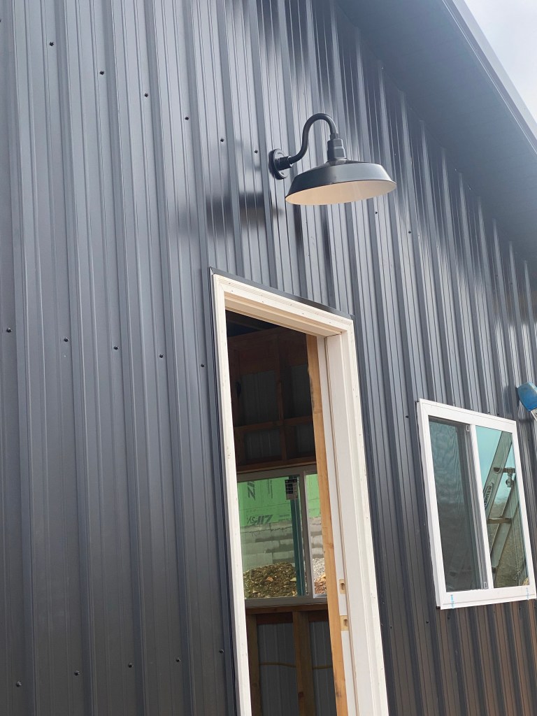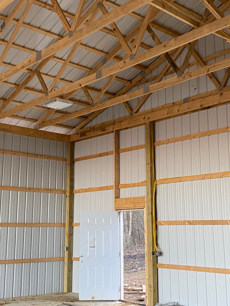 The shed-do-minimum now has electric and plumbing roughed in. Metal siding is almost done. Garage doors should come in next week and then insulation, drywall and final prep for move in.
