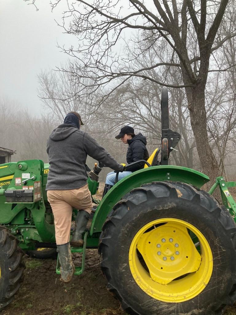 You know when there is just that one last piece that needs fixin but you just can’t reach it…. Well John Deer to the rescue again. Of course Kate did point out the sticker that clearly says do not stand on the bucket … but…. at least she is a certified EMT😀
