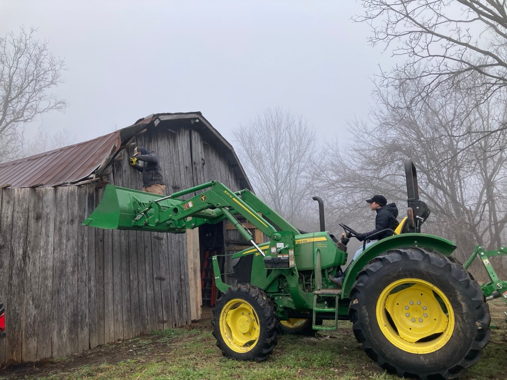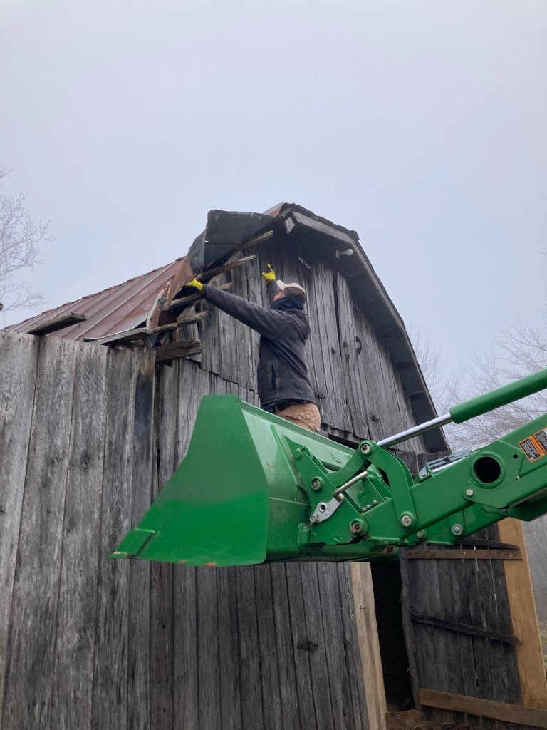 More work on the barn was this weekends goal to tame Needle Eye Mountain.. this time working on the roof with some help from our daughter Kate! It was a foggy COLD day but we were up for the challenge.