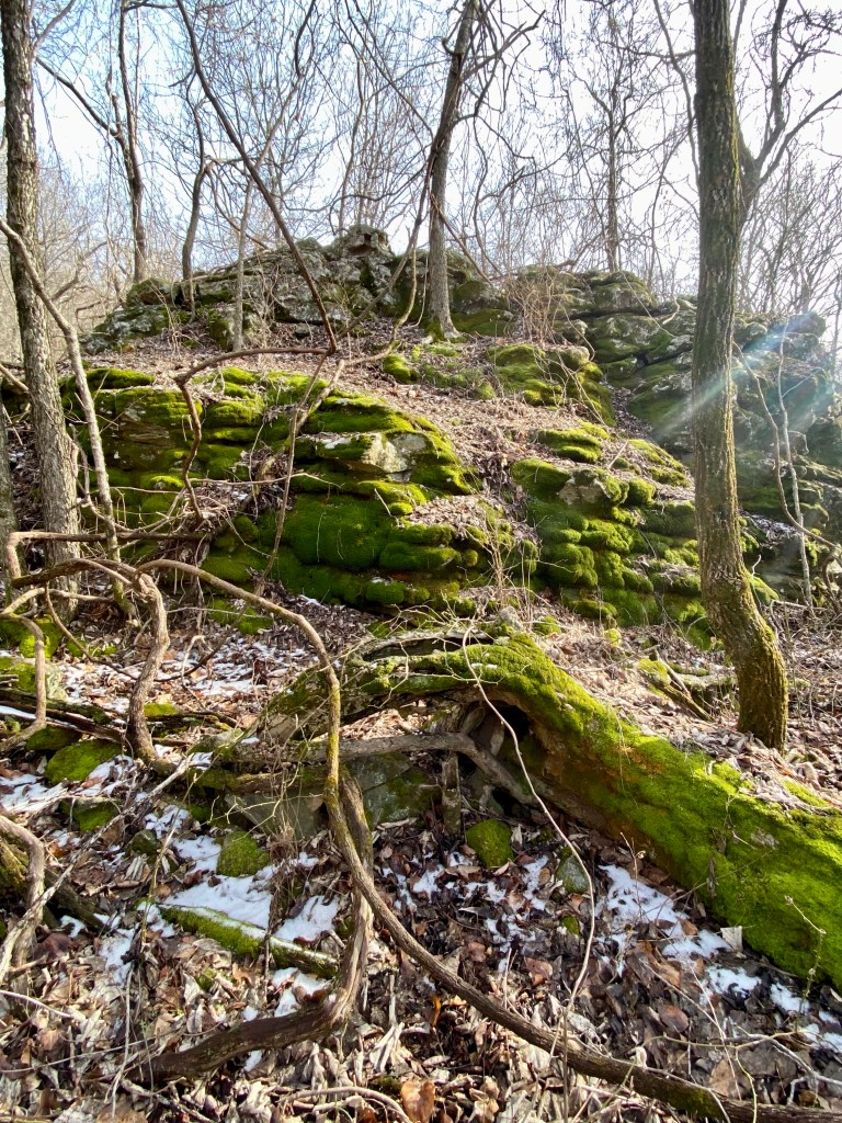 Hiking one day, we found this beautiful moss covered rock structure. It changes in the light and almost looks soft.
