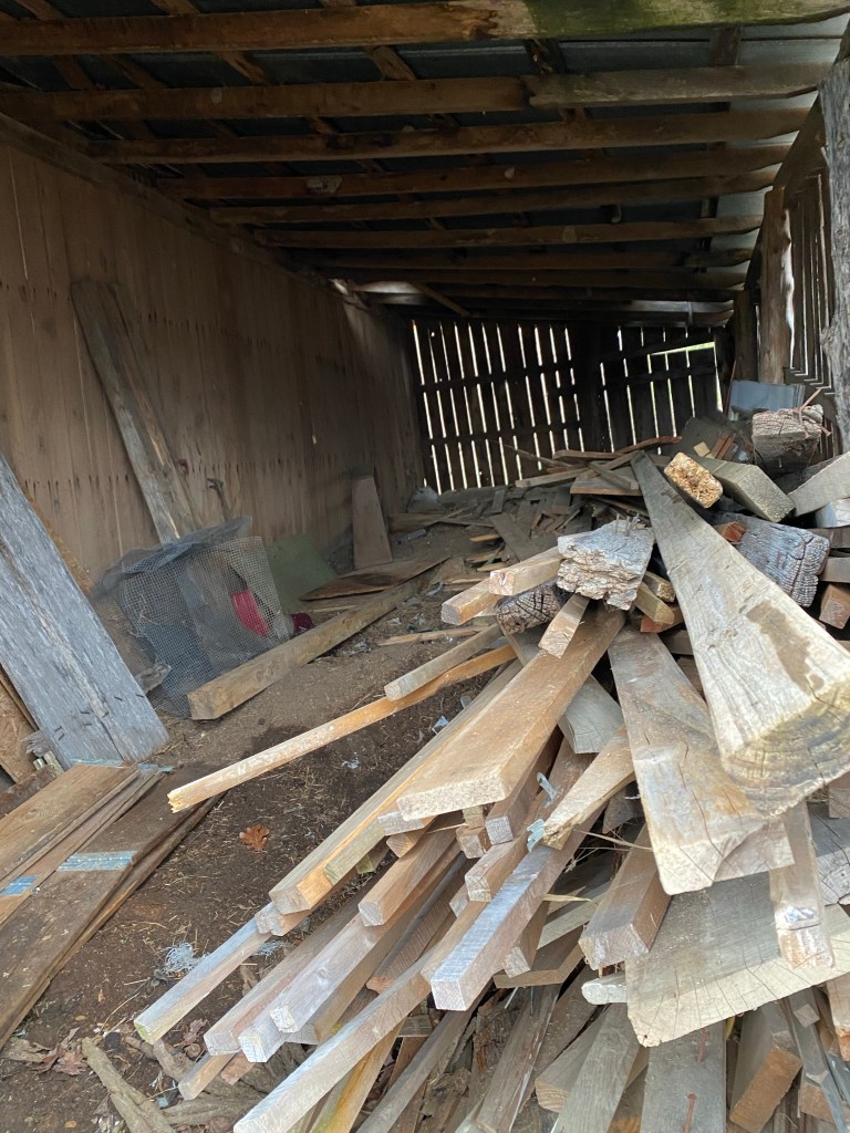 Seems like our work is never done. Always another area to clean out. This is the other side of the barn and it is plum full of wood! Check out this stack of boards. we are going to pull it all out and see what’s usable in the shed and what needs tossed.