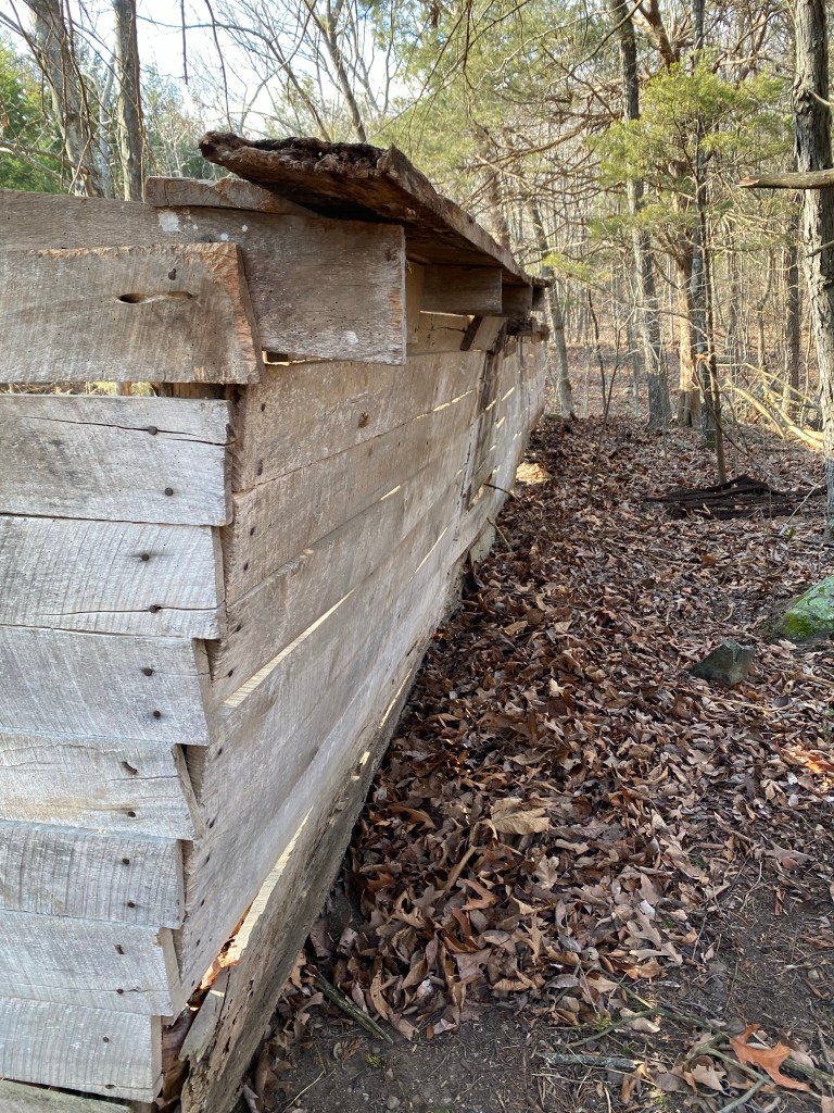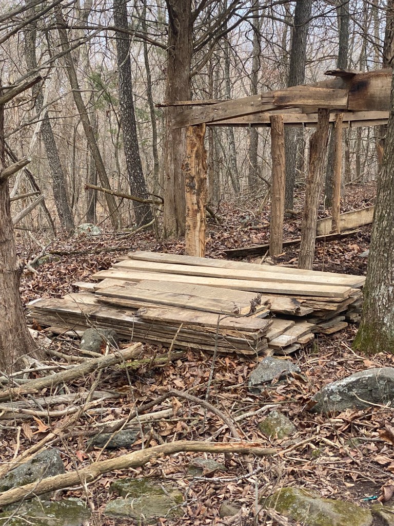Once it was done we moved all the wood up to the shed … uncovered a few critters and one very upset rat for taking his home away.. Then we wiped each one down and trimmed to fit.