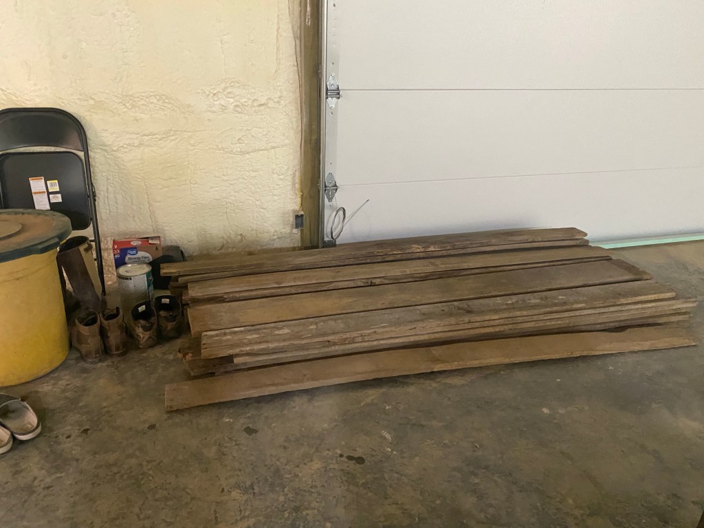 Remember those goat sheds we tore down? We salvaged the wood which was no easy task. Scott had to knock them down and then we pulled every nail out. Some… had as many as 10. Big old rust covered gnarly nails!