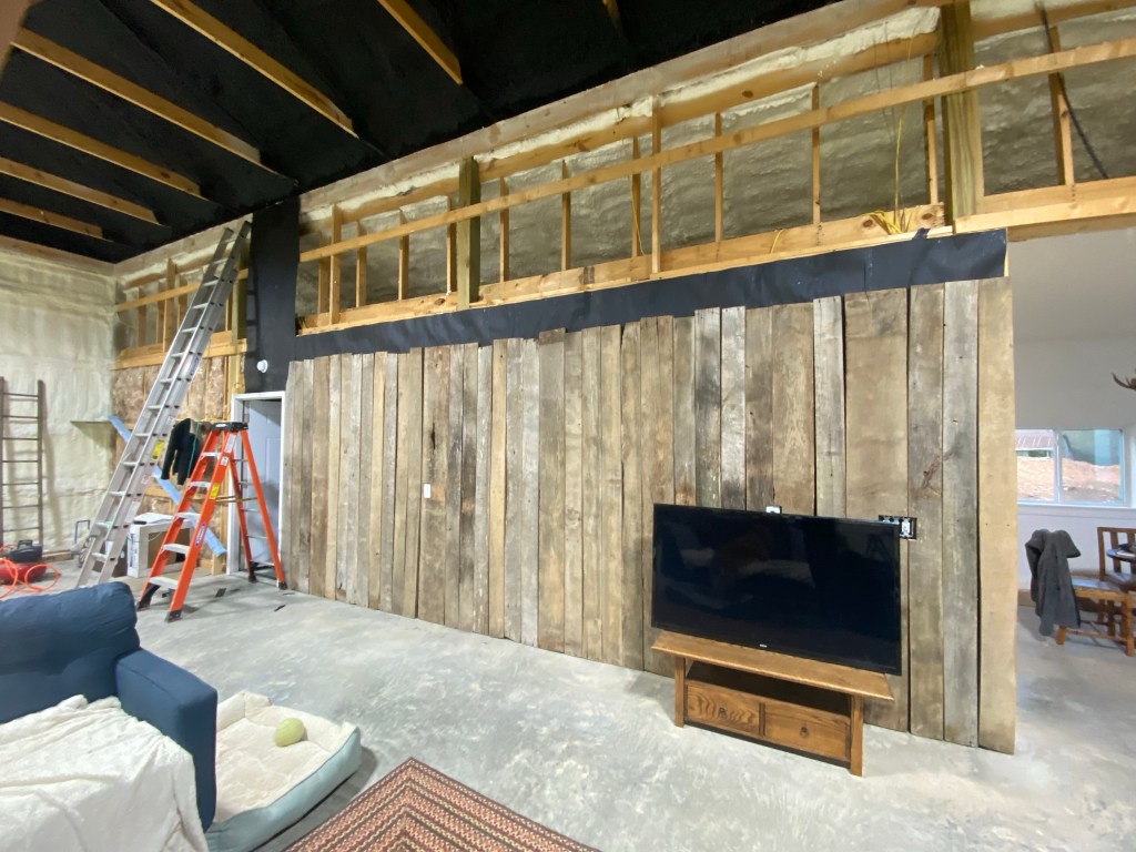 After a week of work, 120 boards and at least a thousand trips up and down the ladder… the finished project!