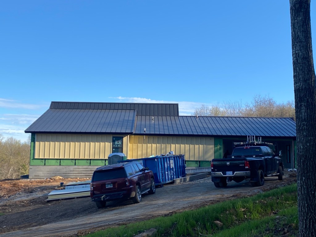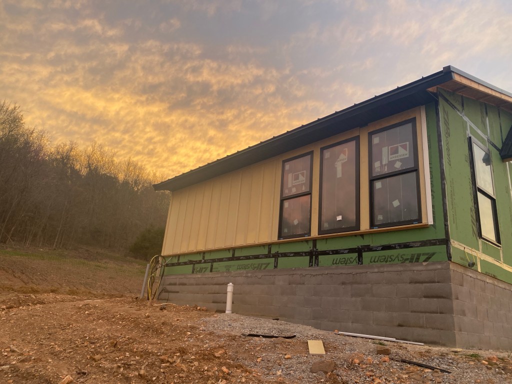 This week at Needle Eye it was operation board and batten. The siding went up surprisingly fast! Love how well it goes with the lines of the roof!