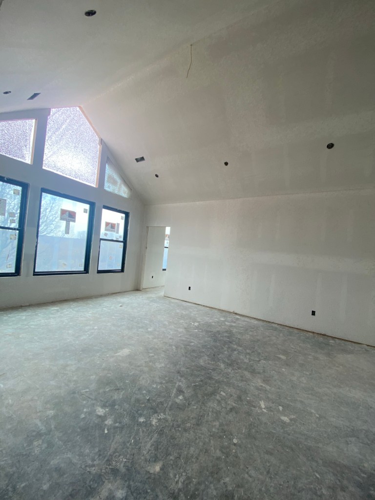 Meanwhile on the inside we have had the first application of texture on sheetrock and wow …. I can vision how it will look.