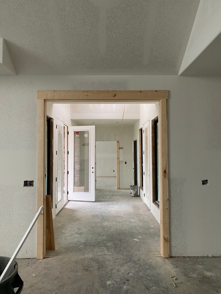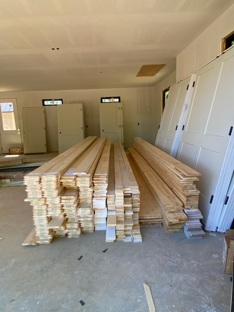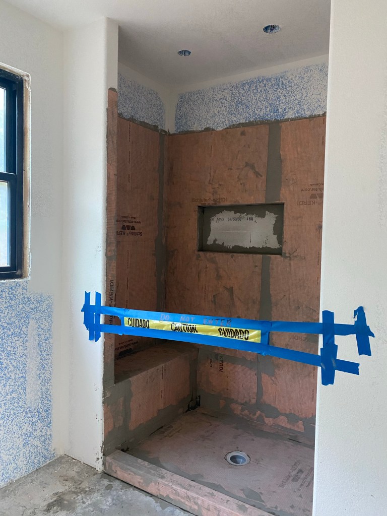 We’ve got several weeks of trim, ceiling treatment, beams and mantle. Cabinets should start arriving in the next two weeks. and bathroom shower is ready for tile!