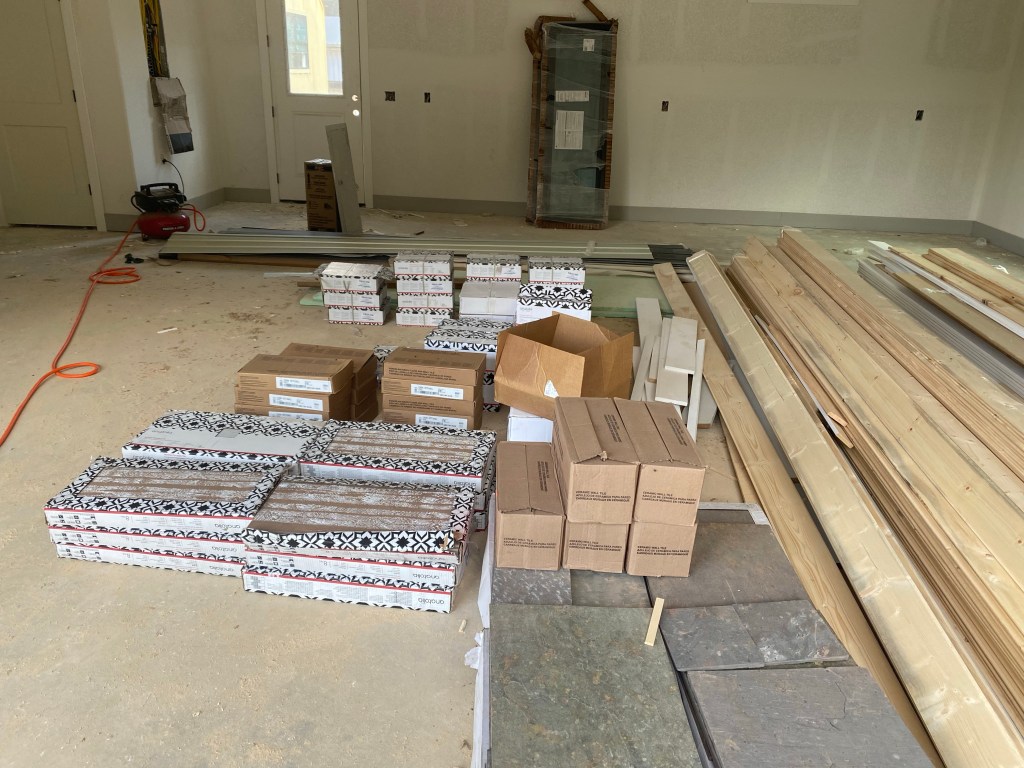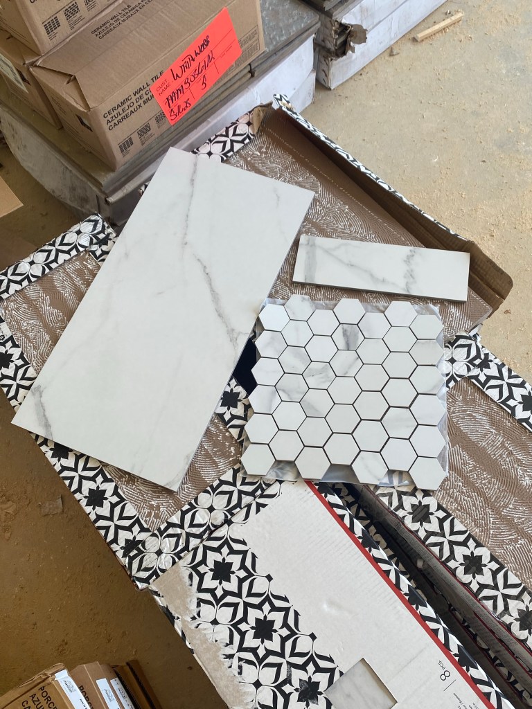 The tile is here! Well almost all of it. Still need the laundry room floor tile to come in. So it’s time to start tiling the bathrooms and entry way. Let’s all take a minute to pray for a break in the tile guy’s schedule to get us started🥰.