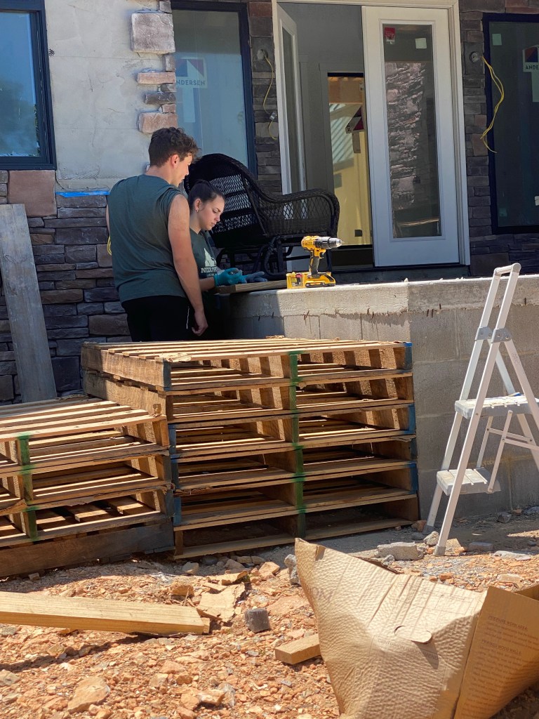 So Kate and Kannon built me some steps out of pallets to get me through till our real steps get poured.