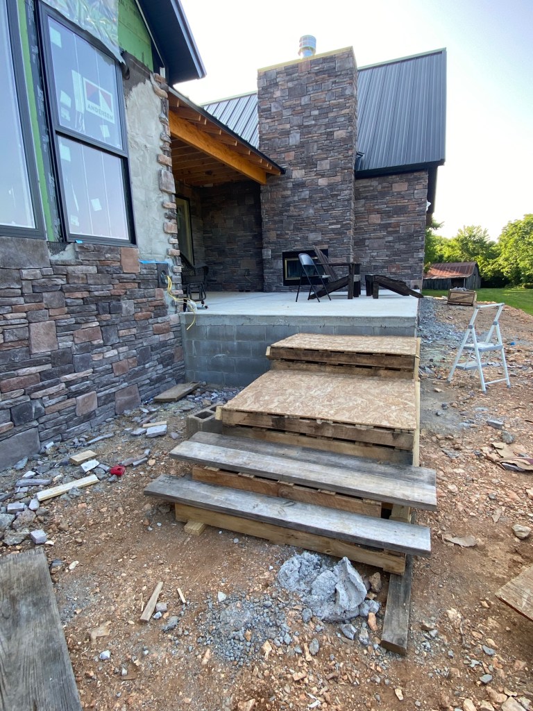Everyone is sick of me groaning and moaning when I try to get up and down from our new house porch. Our step latter is just not quite tall enough or my hips are just not quite flexible enough…. It’s the stool I’m sure. The final steps can’t get poured yet because they need to finish the rock. The rock can’t finish until guess what… the windows get in… and yes… still no word… deep sigh… keep believing! Come on Steve Perry!!