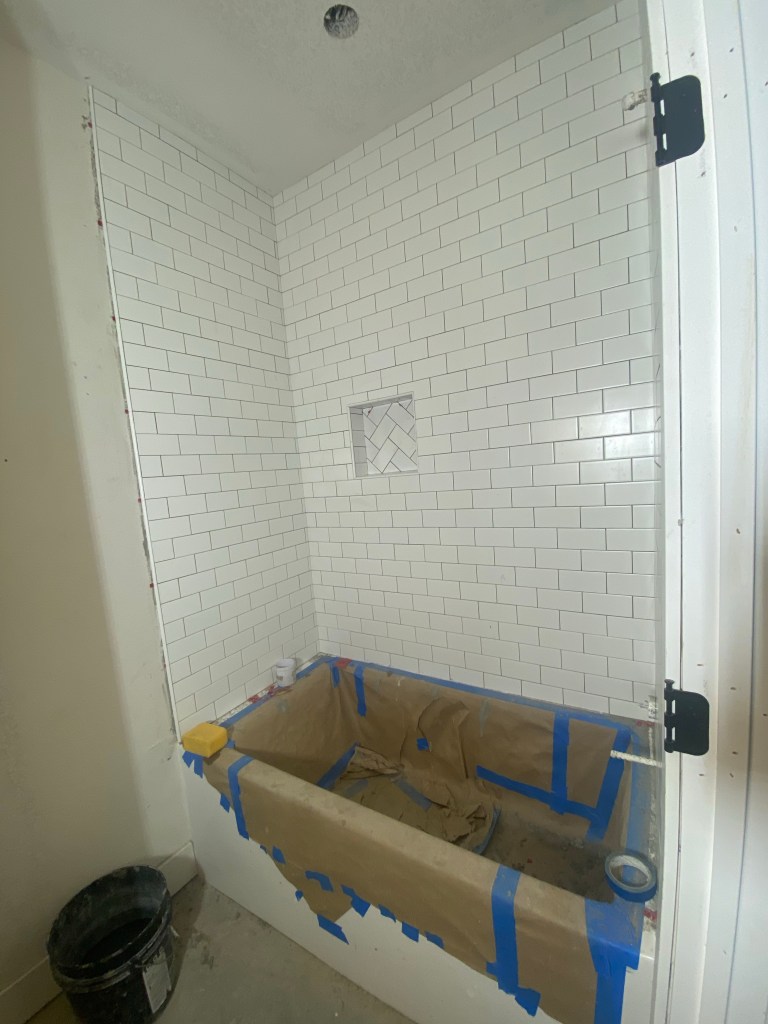 Yes the sound track happening up here on Needle Eye is the sound of saws, grout mixing and scraping and air hoses! Loving the outcomes thus far!