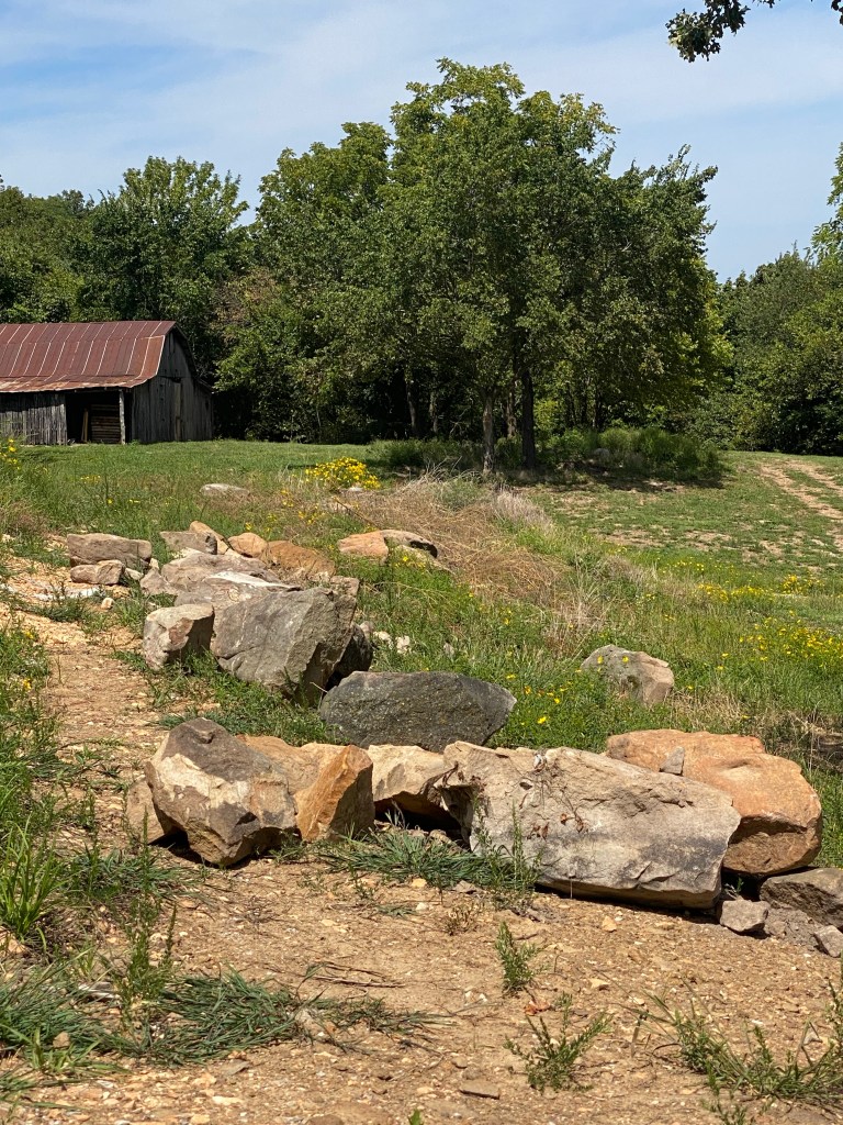 While the house is wrapped up with paint supplies we are starting to get ready for grading the lot. The dirt guy said he would be able to place boulders to build the wall walkway, put down pavers, and build stairs for us if we had the rock. Since we live on a mountain, we have lots of options for rocks and … best part… they are free!