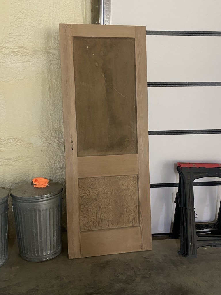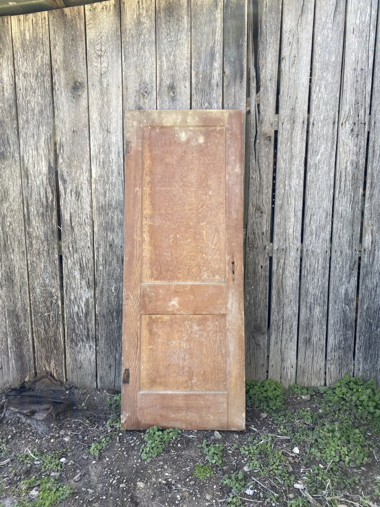 We found this old door while cleaning out the barn. One look at it and I said “dumpster” … Scott, being the antique hunter that he is, said… “it’s a perfect pantry door… it just needs some TLC”. I had been on the hunt for an antique door for the pantry and y’all they ain’t cheap! So I was doubtful.. but I took the challenge.