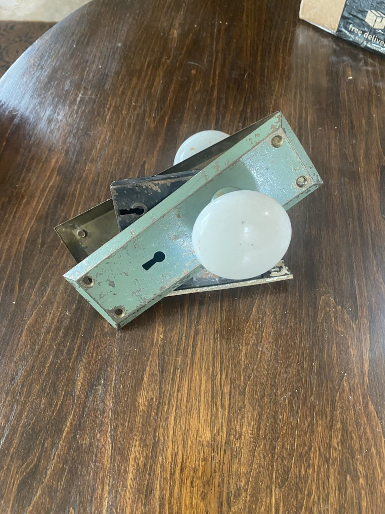 I started with giving it a good bath, stripped all the old paint, bug houses and sanded it. Found some lovely nests in the old key hole ughh!