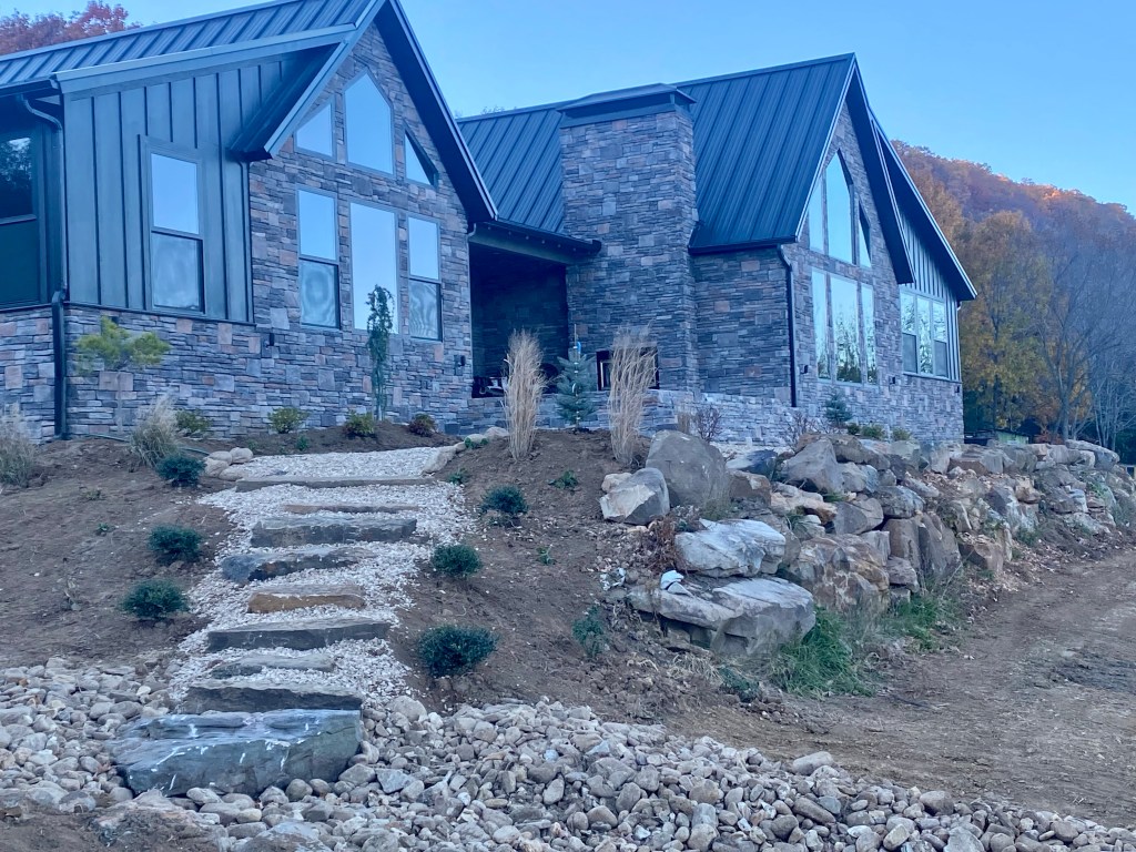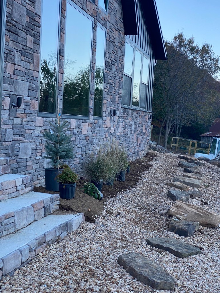 We went for a mountain house landscape. All the rocks came from our property … remember the finger incident…it’s much better by the way😊. We focused on putting in foundation plants this time and will do the second phase of plants once Spring arrives and Malcolm Avaritt provides his master gardening plan😉. Hint hint 😂